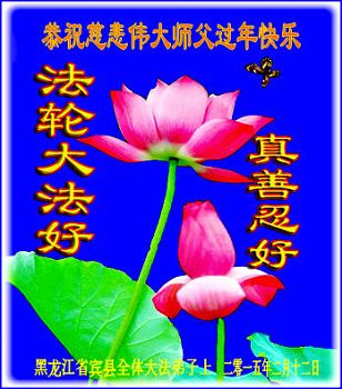 黑龙江省哈尔滨市宾县一学法小组大法弟子恭祝慈悲伟大师父过年好!