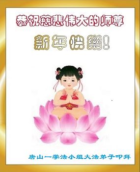 弟子恭祝师尊新年快乐!弟子对师尊感恩的心无法用语言表达,愿在正法最后阶段学好法,去掉各种执着心,精進实修,做好三件事,跟师父回家。 河北省唐山市唐海县全体大法弟子给伟大的师尊拜年!