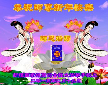 新疆维吾尔自治区交通系统全体大法弟子敬上,精進实修,多救世人,走正最后的修炼路。 大陆国税系统退休大法弟子向慈悲伟大的李洪志师父拜年!