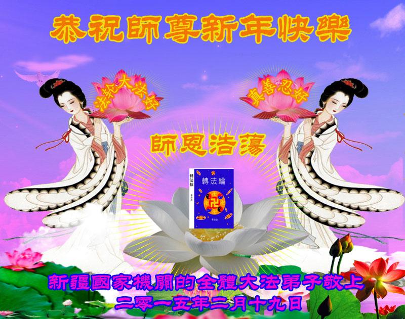 乙未年到来,中国大陆国税系统退休大法弟子向慈悲伟大的李洪志师父拜年! 恭祝师父新年快乐! 新疆维吾尔自治区国家机关的全体大法弟子恭祝慈悲伟大师尊新年快乐!