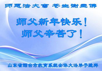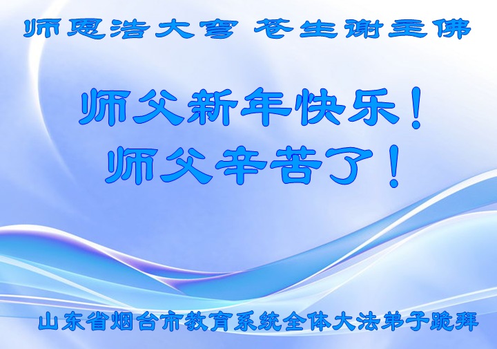 在新的一年里,恭祝师尊新年快乐! 山东省淄博市临淄区大法弟子 山东泰安一大法弟子恭祝师父过年好!