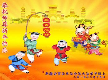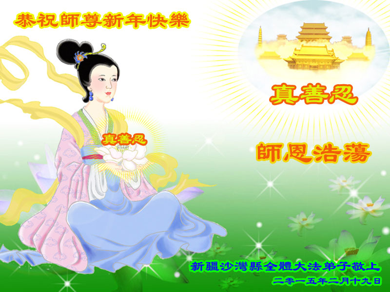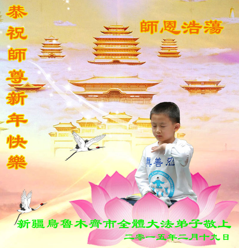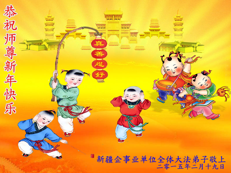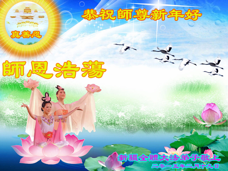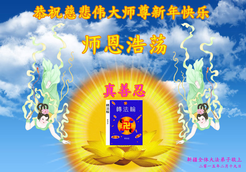 恭祝慈悲伟大师尊新年好、新年快乐!新疆全体大法弟子敬上 二零一五年二月十九日新年贺卡 新疆全体大法弟子恭祝慈悲伟大师尊新年快乐!