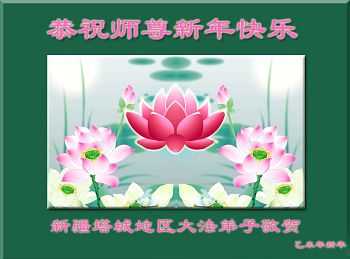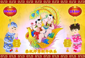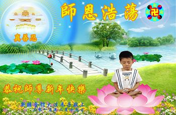 乙未新年即将到 贺卡贺辞似雪飘 万语千言汇一句 恭祝师尊新年好 师尊教诲要记牢 首先得把法学好 五套功法按时炼 遇到矛盾向内找 正念除恶排干扰 执着杂念都得消 身处浊世心自清 黑手烂鬼无处逃 助师救人争分秒 心怀善念才有效 慈悲智慧讲真相 众生得救师尊笑 师父大恩无以报 地狱之中把我捞 供果焚香再叩首 恭祝师尊新年好 新疆和田大法弟子恭祝慈悲伟大的师父2015年新年好!