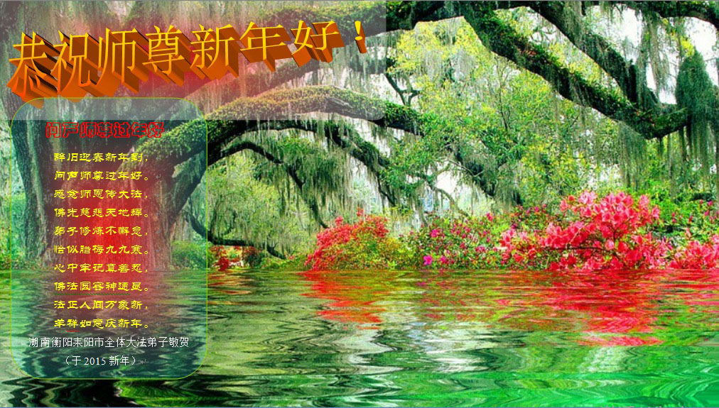 师尊辛苦了,您过年好! 大陆大法弟子向伟大的师尊拜年! 湖南衡阳耒阳市一学法小组大法弟子叩拜 湖南郴州一学法小组大法弟子恭祝慈悲伟大的师尊过年好!
