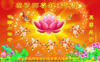 陕西省西安一学法小组大法弟子恭祝师尊新年快乐!