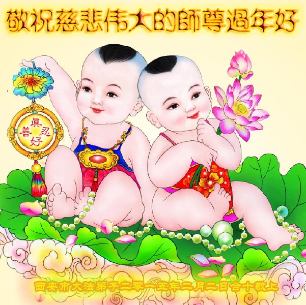 陕西省西安市大法弟子向慈悲伟大的师尊拜年!