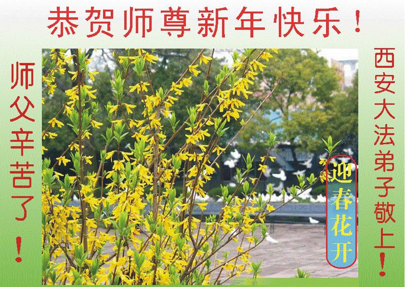 师尊好!师尊您辛苦了!弟子们想念您!新年里弟子们要更加精進,走正路,多救人。让师尊多一份欣慰,少一分操劳。 陕西省西安大法弟子恭贺师尊新年快乐!