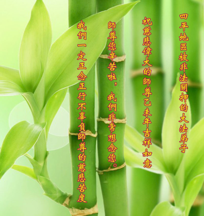 感谢师尊慈悲苦度!我们一定正念正行,不辱使命,在任何环境中抓住一切机缘,救度众生。不辜负师尊的殷切期望,不辜负正法时期大法弟子的光荣称号。 被非法关押在监狱中的广东梅州大法弟子向慈悲伟大的李洪志师父问候中国新年好!