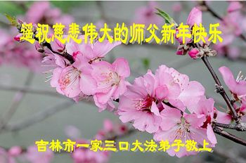 吉林市一家三口大法弟子遥祝慈悲伟大的师尊新年快乐!
