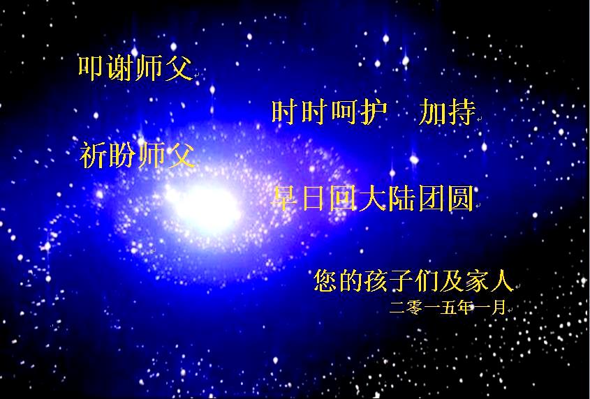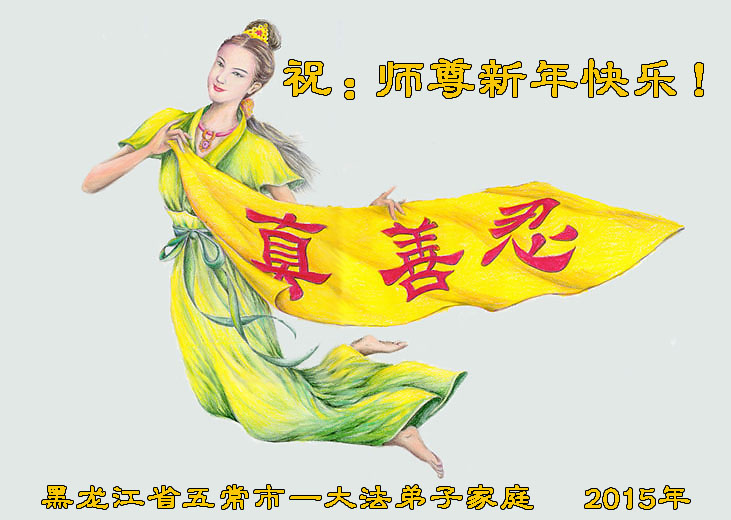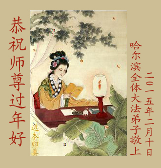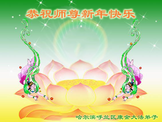 【明慧网二零一五年二月十八日】 黑龙江省哈尔滨呼兰区康金大法弟子恭祝伟大的师尊新年快乐!