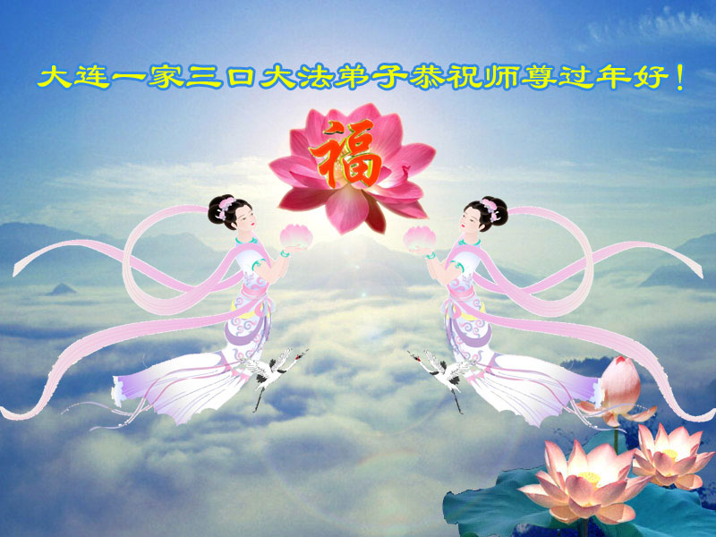 辽宁省大连大法弟子全家五口给师尊拜年!