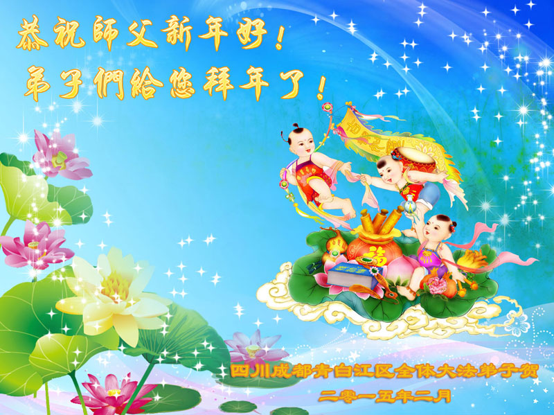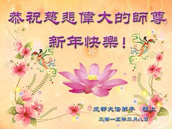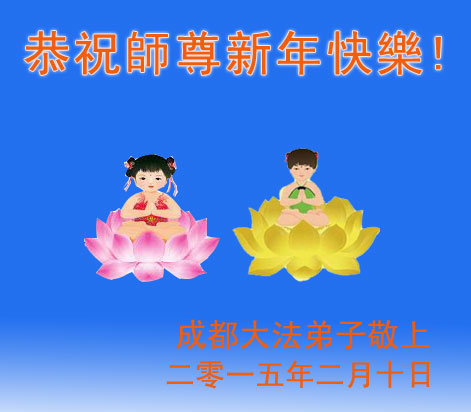 【明慧网二零一五年二月十八日】 四川成都市华阳九人学法小组恭祝慈悲伟大的师尊新年快乐!