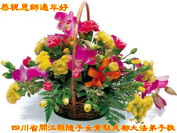 恭祝师尊新年好,师父为我们付出了很多,弟子们无以为报,以本地花卉敬献师父,略表心意! 四川省成都市温江区大法弟子敬上 四川省达州市开江县随子女常驻成都大法弟子恭祝恩师过年好!