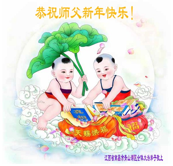 恭祝慈悲伟大的师尊新年快乐! 我们坚修大法紧随师尊尽所能完成师尊的要求,做好三件事,精進随师乘法船返回家园。 江西省南昌市青云谱区全体大法弟子恭祝师父新年快乐!