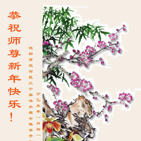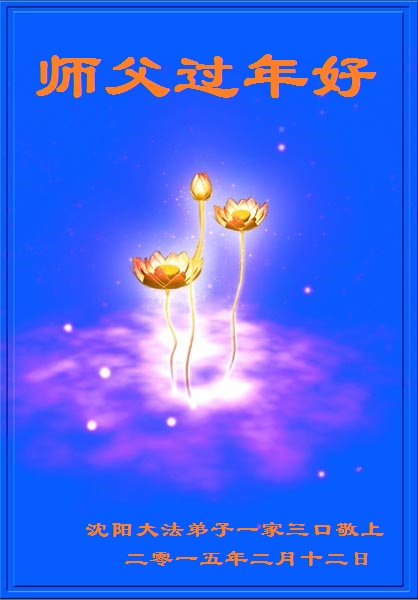 【明慧网二零一五年二月十八日】 辽宁省沈阳市皇姑区家庭学法小组恭祝师尊新年快乐!