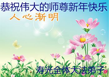 弟子一家五人给慈悲伟大的师尊拜年!祝师尊新年快乐!弟子在新的一年里会抓紧时间做好三件事,回报师尊的慈悲苦度。 再次叩拜师尊! 高密八十六岁大法弟子给慈悲伟大的师尊拜年! 感谢师尊又一次给予生命,弟子一定听师尊的话,好好修心性证实大法,尽自己最大的力量多救人。 山东省潍坊市寿光市大法弟子恭祝慈悲伟大的师尊过年好!