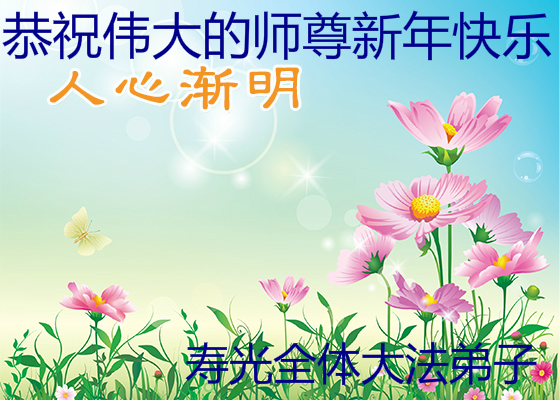 慈悲伟大的师父过年好! 我们全家沐浴在您的浩荡佛恩中,不修炼的家人因知道大法好而身心受益。师父啊,弟子只有精進再精進才能不辱使命,才能对得起师尊的慈悲苦度。再次叩拜师尊! 潍坊市寒亭区一大法弟子及家人 山东省潍坊市寿光市全体大法弟子恭祝师尊新年快乐!