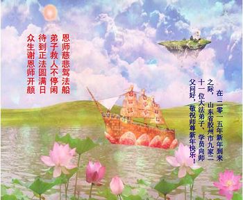 谢谢师父的慈悲救度! 山东省青岛学法小组全体大法弟子:跪拜师尊,恭祝师尊新年快乐!