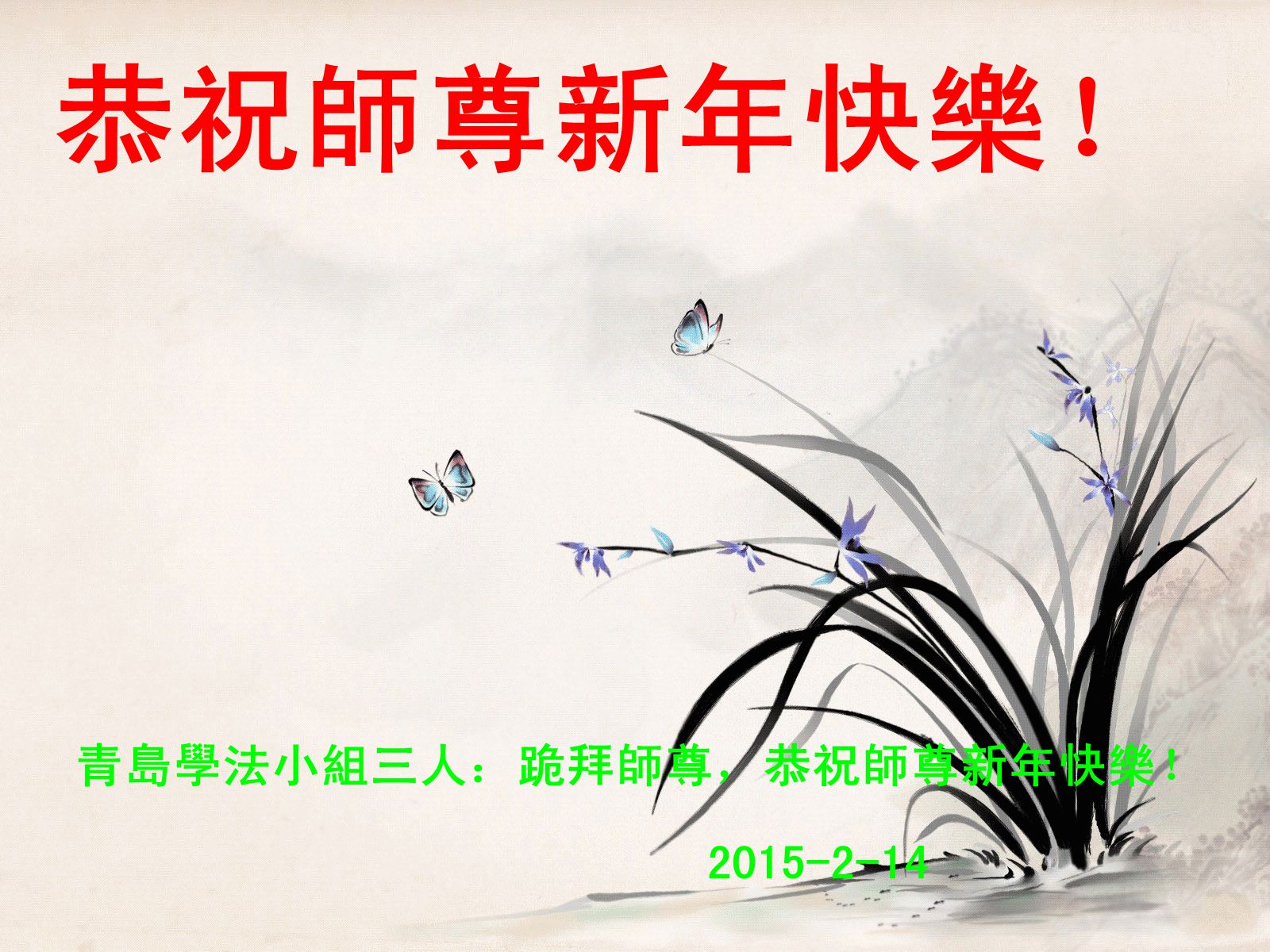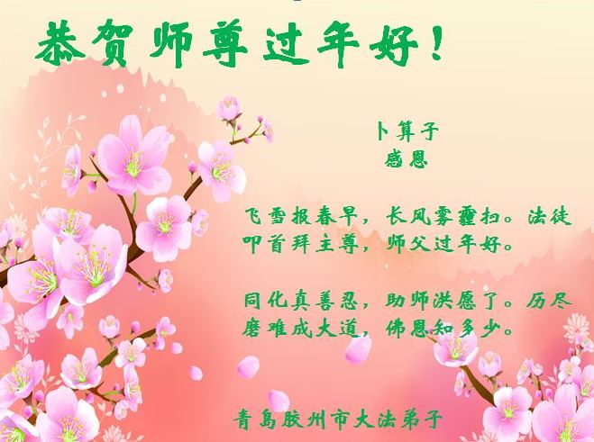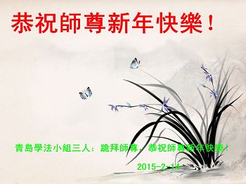 恭贺师尊新年快乐! 青岛市大法弟子敬上 2015年2月12日 山东省青岛市莱西市大法弟子恭祝慈悲伟大的师父过年好!