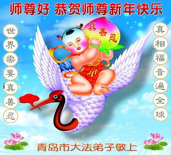 师尊您好 恭贺师尊新年快乐! 谢谢师尊的慈悲救度,弟子在以后的修炼道路中,一定坚定的走好师尊安排的路,遇事向内找,时时修自己,做一个堂堂正正的大法弟子,跟师尊回家。 青岛市大法弟子敬上 2015年2月12日 山东省青岛大法弟子恭贺师尊新年快乐!