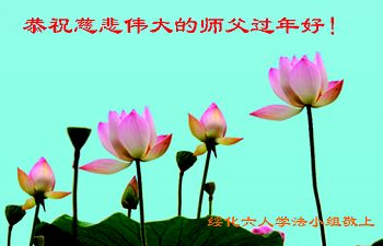 师尊过年好! 我们一定听师父的话,按大法的标准严格要求自己,精進实修,做好三件事,多救人。 黑龙江省大兴安岭地区全体大法弟子敬拜 黑龙江绥化六人学法小组大法弟子恭祝师尊过年好!