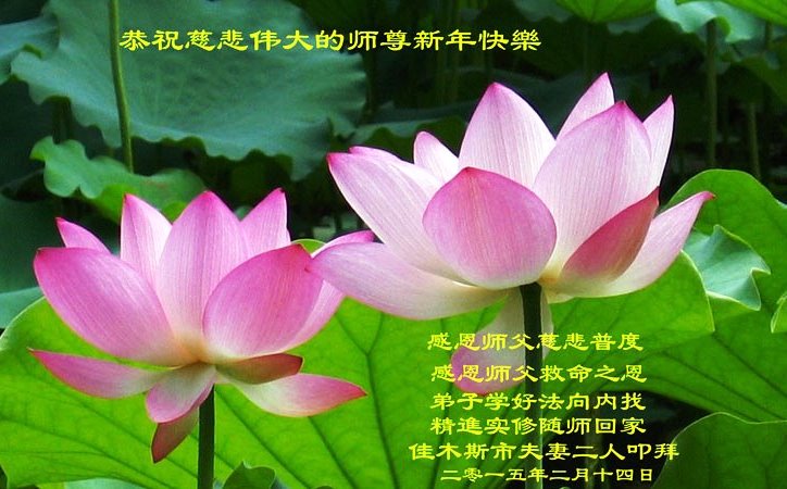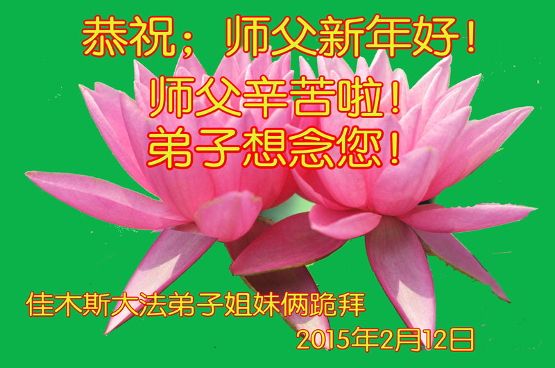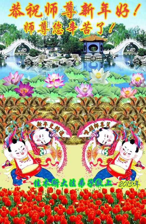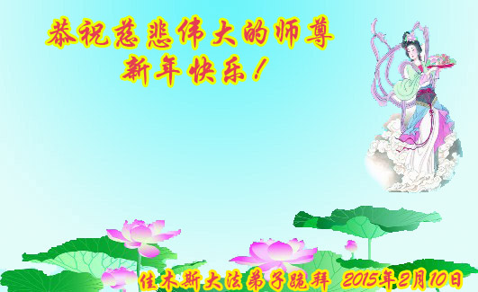 【明慧网二零一五年二月十八日】 黑龙江省佳木斯夫妻二人恭祝慈悲伟大的师尊新年快乐!