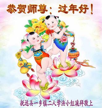 佳木斯地区抚远县全体大法弟子跪拜:恭贺师尊过年好!师尊辛苦了!弟子们让师尊操心了!弟子们唯有精進、再精進、多救人谢师恩! 黑龙江省佳木斯市桦川县老年大法弟子学法组恭祝师尊新年好!