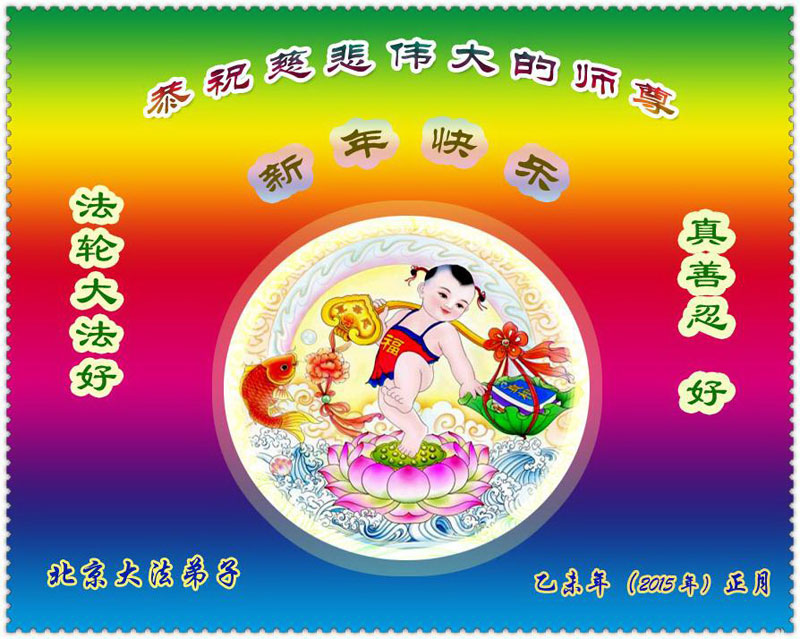 师传大法救苍生, 弟子助师救世人, 认真做好三件事, 兑现誓约随师还。 弟子感恩师尊的慈悲苦度。 北京、上海的大法弟子及家人恭祝慈悲伟大的师尊乙未年新年快乐!