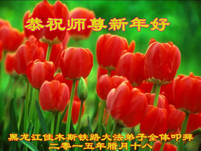 在羊年来临之际,我们衷心祝愿师尊新春快乐。且不负师尊教诲和慈悲普度,精進实修不怠慢,救度众生随师还。 新华社大法弟子恭贺 2015年2月16日 黑龙江佳木斯铁路全体大法弟子祝慈悲伟大的师尊新年好!新年快乐!