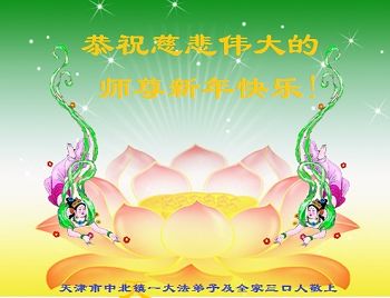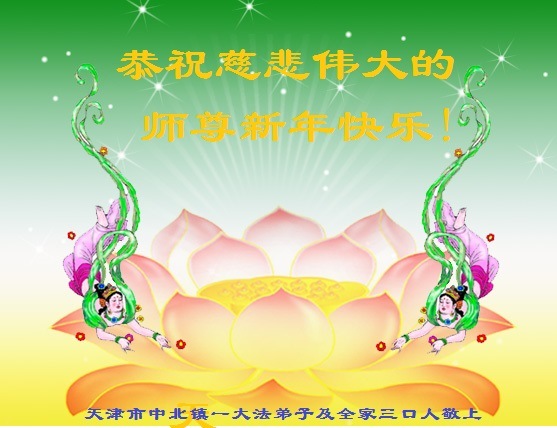 天津市中北镇一大法弟子及全家三口恭祝师尊新年快乐!