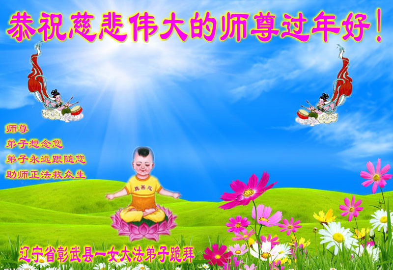 辽宁省清原县全体大法弟子恭祝慈悲伟大的师尊过年好,新年快乐! 辽宁省铁岭大法弟子恭祝师父过年好!