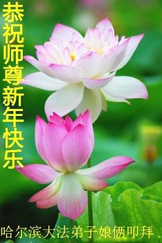 黑龙江省哈尔滨大法弟子娘俩恭祝师尊新年快乐!