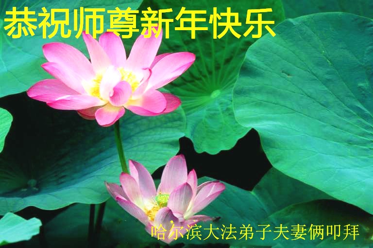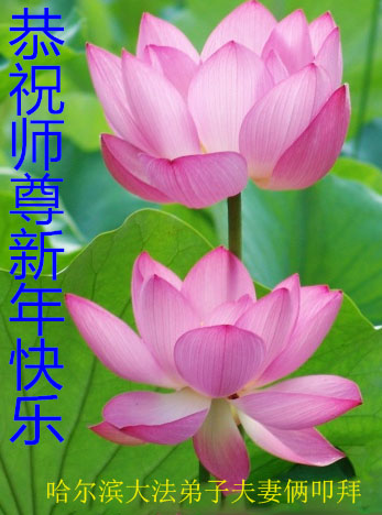 黑龙江省哈尔滨大法弟子夫妻俩恭祝师尊新年快乐!