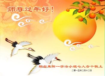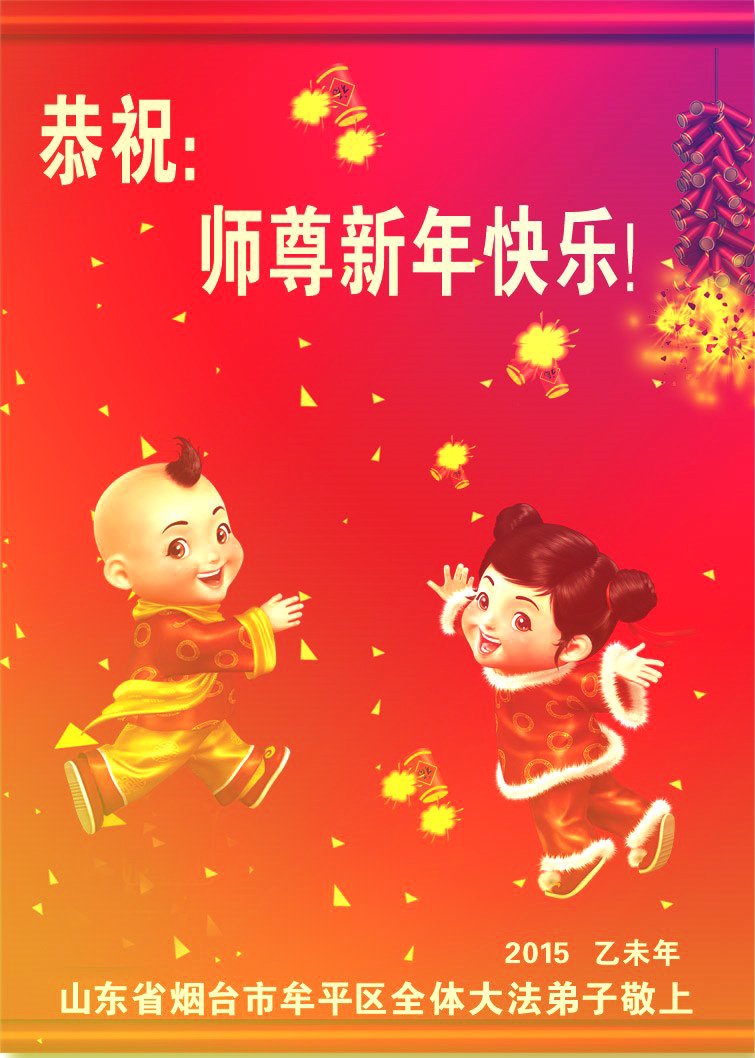 弟子无限感恩伟大的师尊的救度,弟子一定会更加精進实修做好三件事,让师父放心,跪拜师尊,合十! 在二零一五年大年到来之际,我们山东省淄博大法弟子恭祝师父过年好!