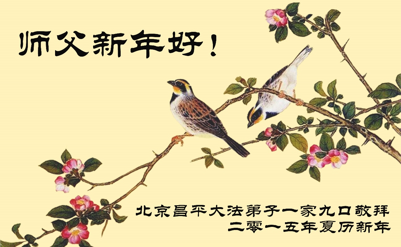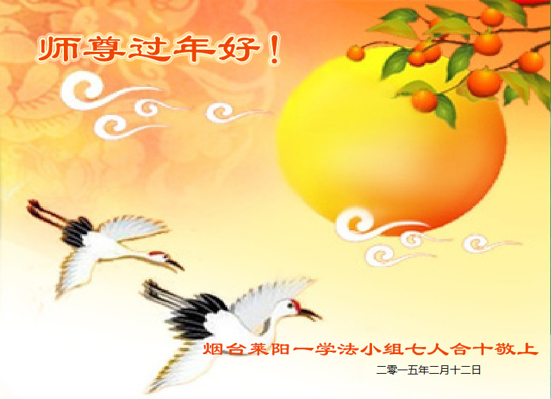 二零一五年新年,大陆一地区学法小组全体大法弟子向慈悲伟大的师父问好:师父您好!恭祝师父新年快乐!全体大法弟子叩拜师父。 全体大法弟子敬上 大陆大法弟子恭祝慈悲伟大的师尊过年好!