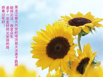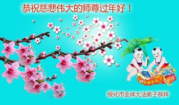 尊敬的师父:我们走过了风霜雪雨,又信心百倍的迎来了新的一年。 在新年即将到来之际,我们更加思念慈悲神圣的师父,渴望见到师父。中国是师父的故乡,新年佳节,恩师不能回到故乡,作为弟子尤其身为“武士”的我们这些弟子,不能守护在师父的左右,心中纵有千言万语,万语千言也难以表达。唯有遵循师父的教诲,随师父所愿,多救人,做好三件事,精進!精進!再精進! 黑龙江省绥化全体大法弟子恭祝师尊过年好!