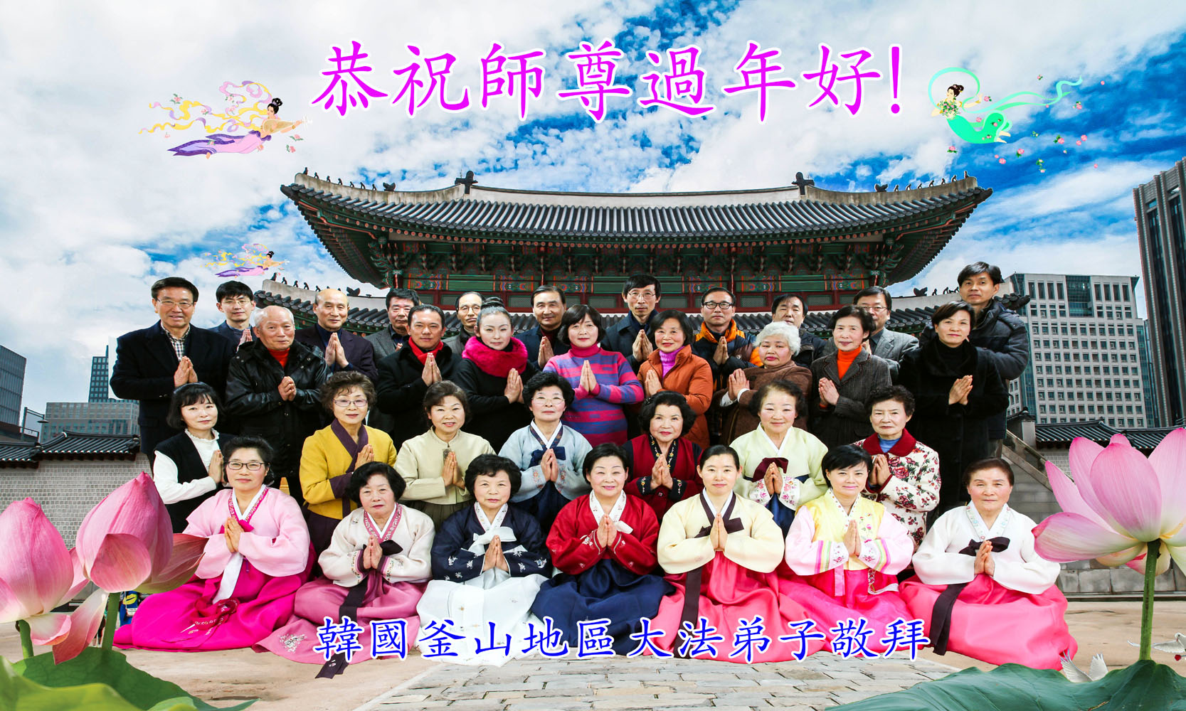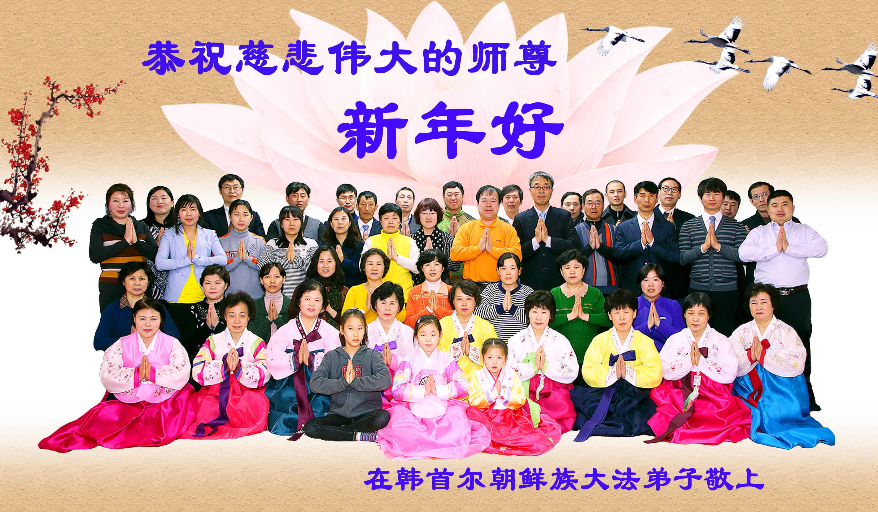 韩国首尔市东部大法弟子恭祝慈悲伟大的师尊新年快乐!