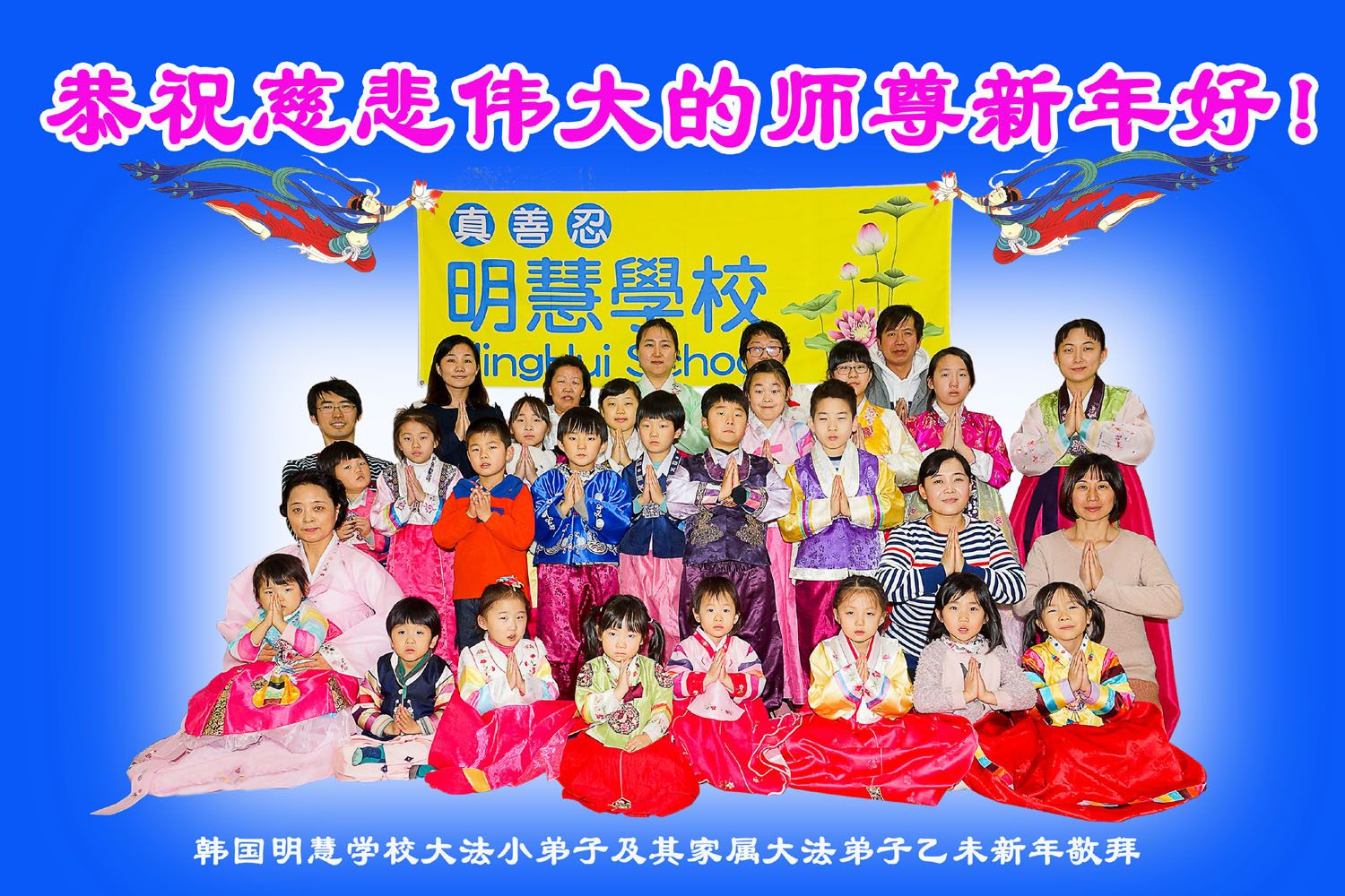 韩国首尔明慧学校大法小弟子恭祝慈悲伟大的师尊新年好!