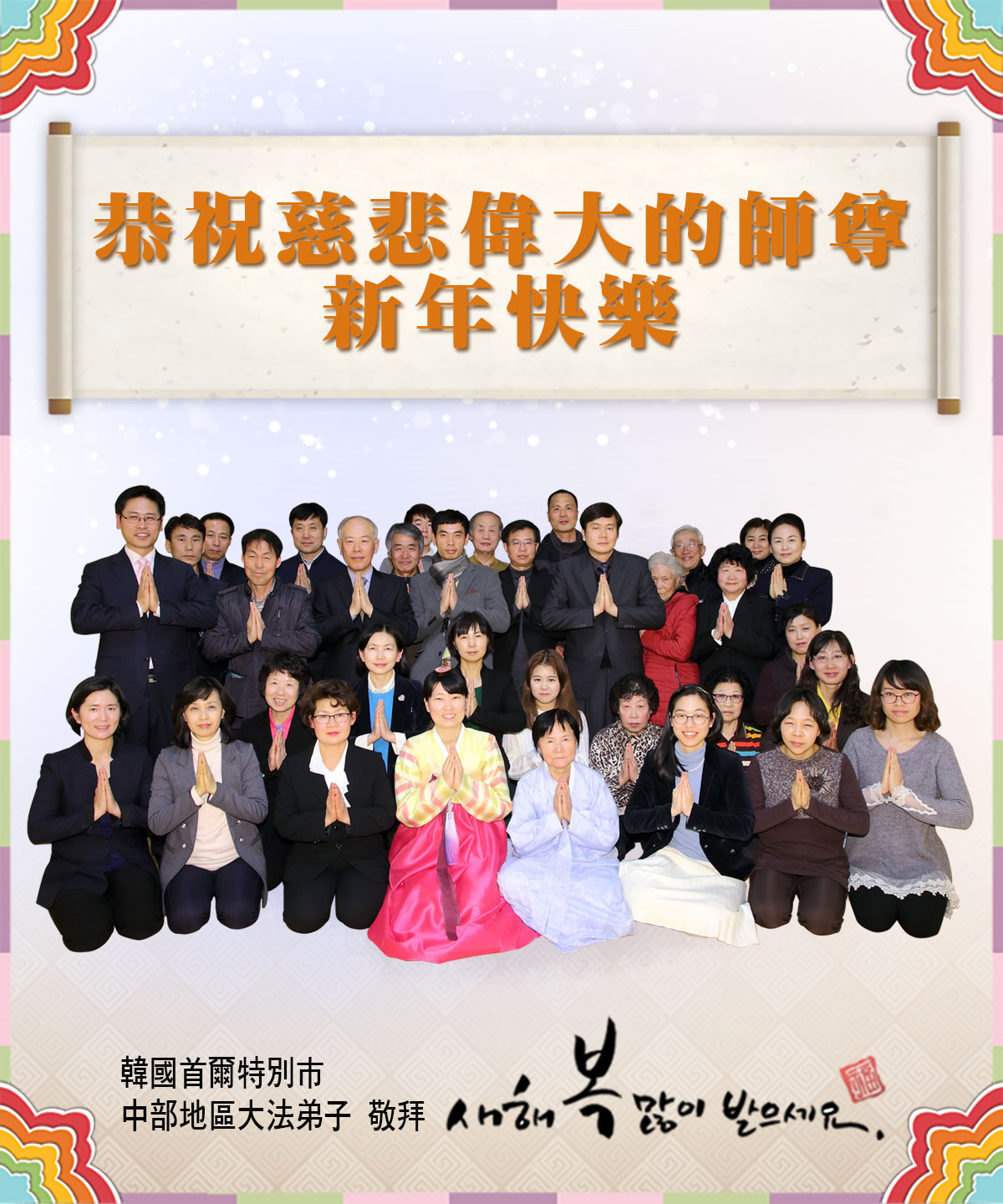 韩国首尔市中部大法弟子恭祝慈悲伟大的师尊新年快乐!