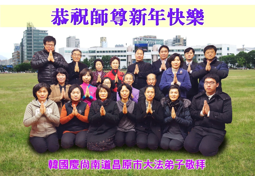 韩国庆尚南道昌原市大法弟子恭祝慈悲伟大的师尊新年快乐!