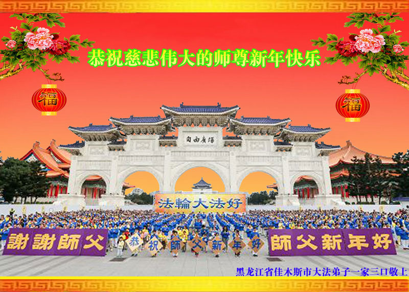 黑龙江省佳木斯市大法弟子一家三口向慈悲伟大的师尊拜年!