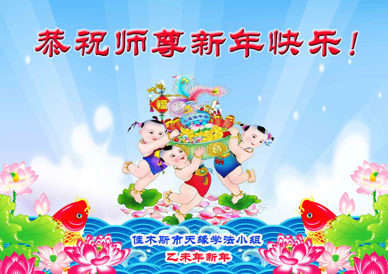 黑龙江省佳木斯天缘学法小组大法弟子恭祝师尊新年快乐!