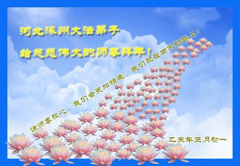 【明慧网二零一五年二月十九日】 河北保定定州市一家大法弟子祝慈悲伟大的师尊新年好!