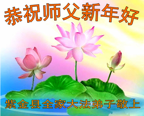 尊敬的师父: 感谢您的慈悲呵护和点悟,在即将到来的新年,祝您新年快乐!弟子一定更加精進,加大向内找的力度,真正的在每件事上做到实修,达到法的标准,以更加纯净的心态来做好三件事! 深圳大法弟子 广东省河源市紫金县全家大法弟子恭祝师父新年好!
