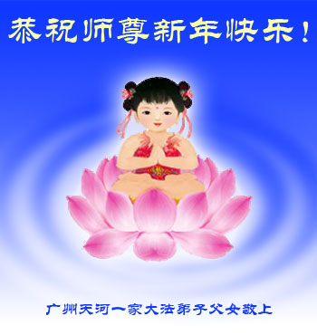 广州大法弟子向师尊拜年!恭祝慈悲伟大的师尊新年好! 叩谢师尊对弟子和众生的慈悲苦度! 广东省广州天河一学法小组大法弟子恭祝师父新年好!