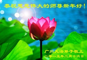 广州市天河区一家夫妻同修和女儿敬祝慈悲伟大的李洪志师父过年好!感恩师父佛恩浩荡!弟子要尽快精進实修,用纯净的心多救人,与同修配合好,发挥大法弟子的作用,不负圣恩! 广州天河大法弟子敬上 二零一五年腊月二十八日 广东省广州花都一家二人大法弟子恭祝师尊新年快乐!