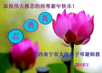 恭祝师父新年快乐!我们一定会做好三件事,请师父放心。 广西博白县大法弟子 2015.2.16 广西大法弟子恭祝师父新年快乐!