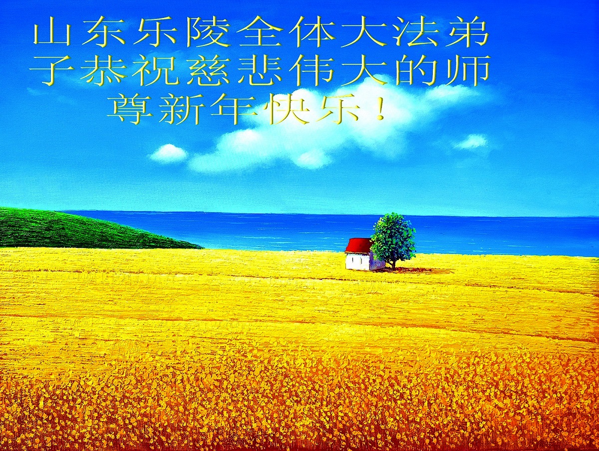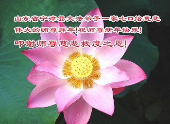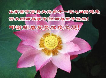 山东德州陵城区一大法弟子全家恭祝慈悲伟大的师尊新年快乐!