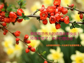 不忘师父救度之恩,多救人,圆满功成。叩拜师父! 山东省德州市平原县一名老年大法弟子代表全家人祝恩师过年好!