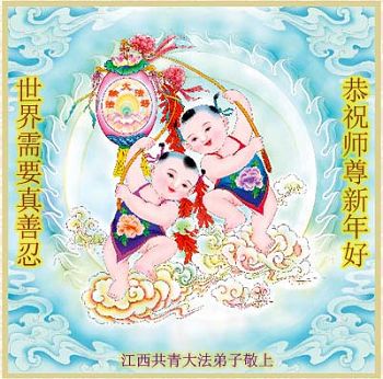 师父您好,又是一个新年,弟子在您的慈悲呵护中走过了十五个春秋。在十五年里,弟子三件事有时做的好,有时做的不近人意,不合标准,愧对师父您的艰巨付出。但弟子能记住自己是修炼人,是干什么来的,请师父放心。 江西南昌县全体大法弟子向慈悲伟大的师尊问好!祝师尊新年快乐!